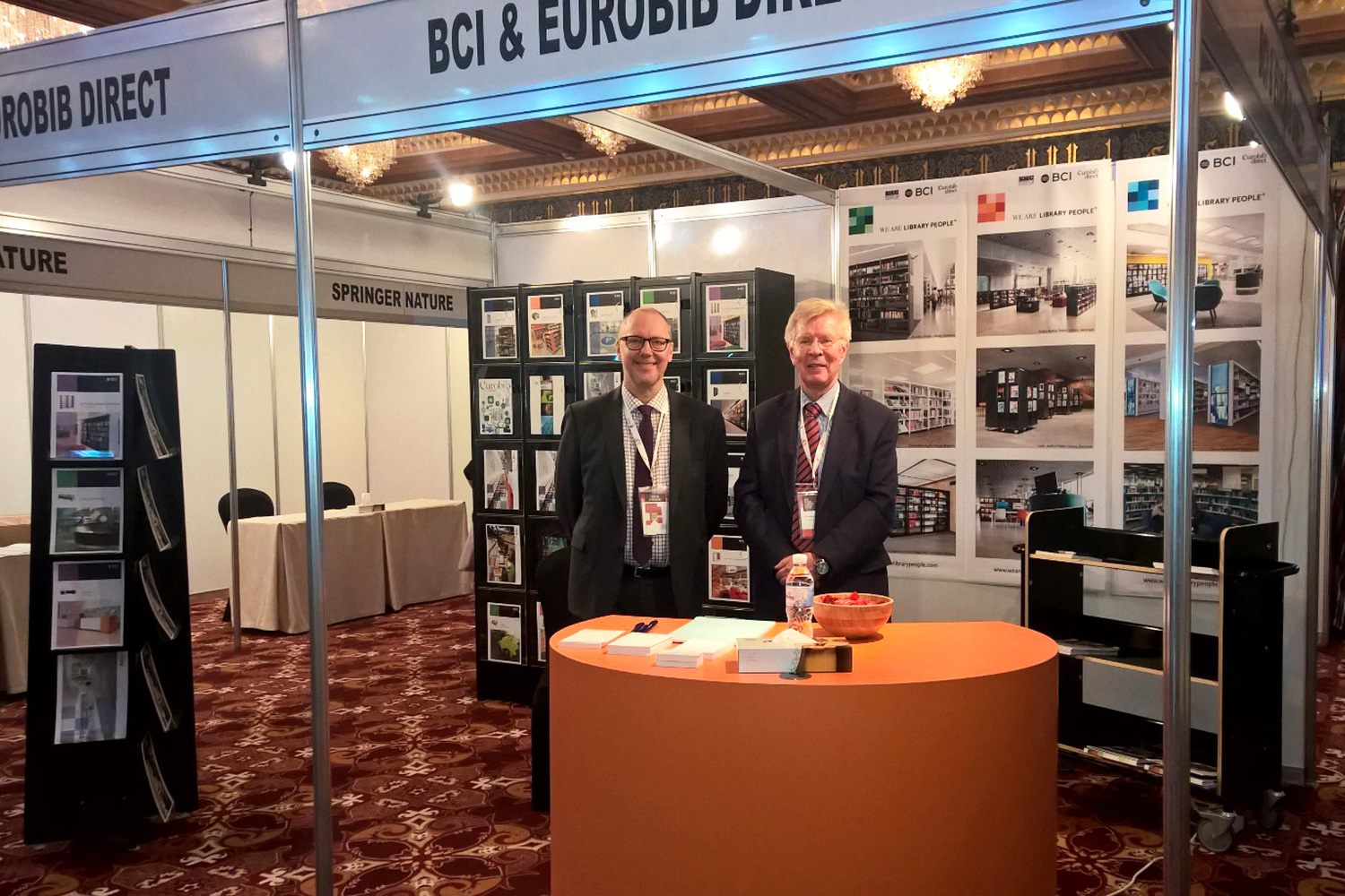 Nos représentants, Kjell Granelli, directeur des exportations chez Lammhults Biblioteksdesign A/S et Nils-Ove Johansson, directeur régional des ventes, y ont présenté nos solutions d’aménagement intérieur pour bibliothèques.