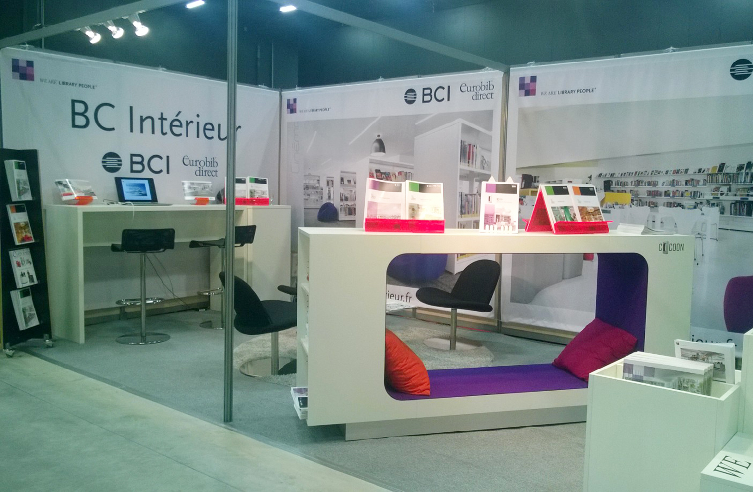 Notre stand était également équipé de quelques meubles et présentoirs colorés de la gamme Eurobib Direct que vous trouverez ici.