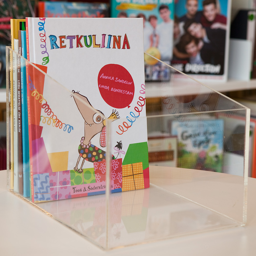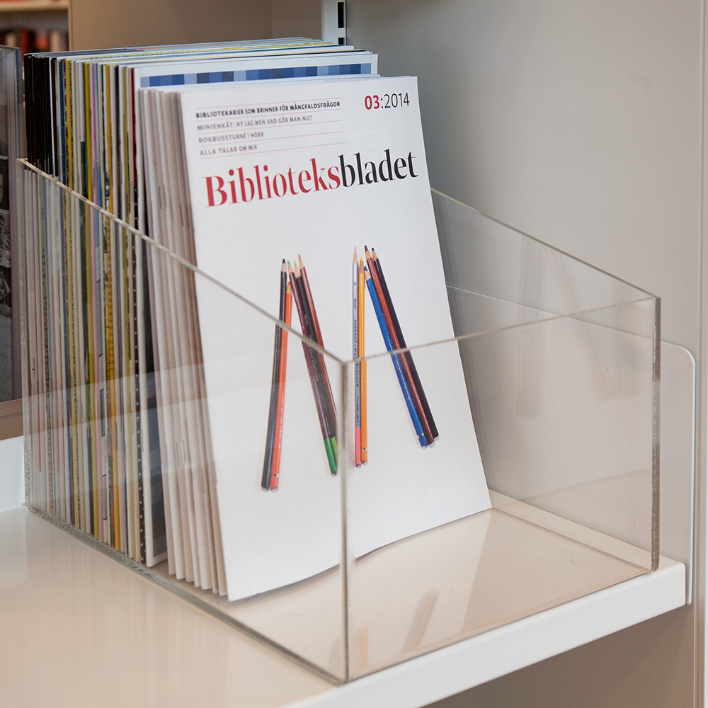 Bac de présentation fonctionnel et chic avec face avant rabaissée pour la consultation.