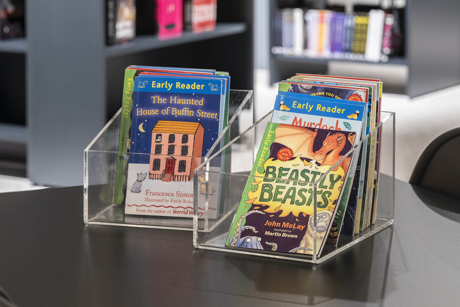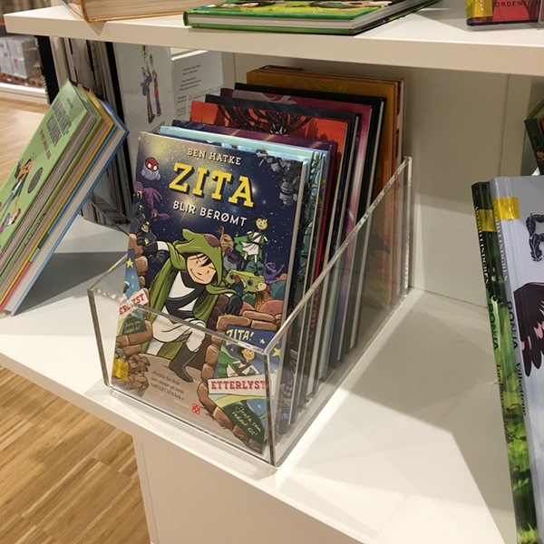 Bac de présentation fonctionnel et chic avec face avant rabaissée pour la consultation.