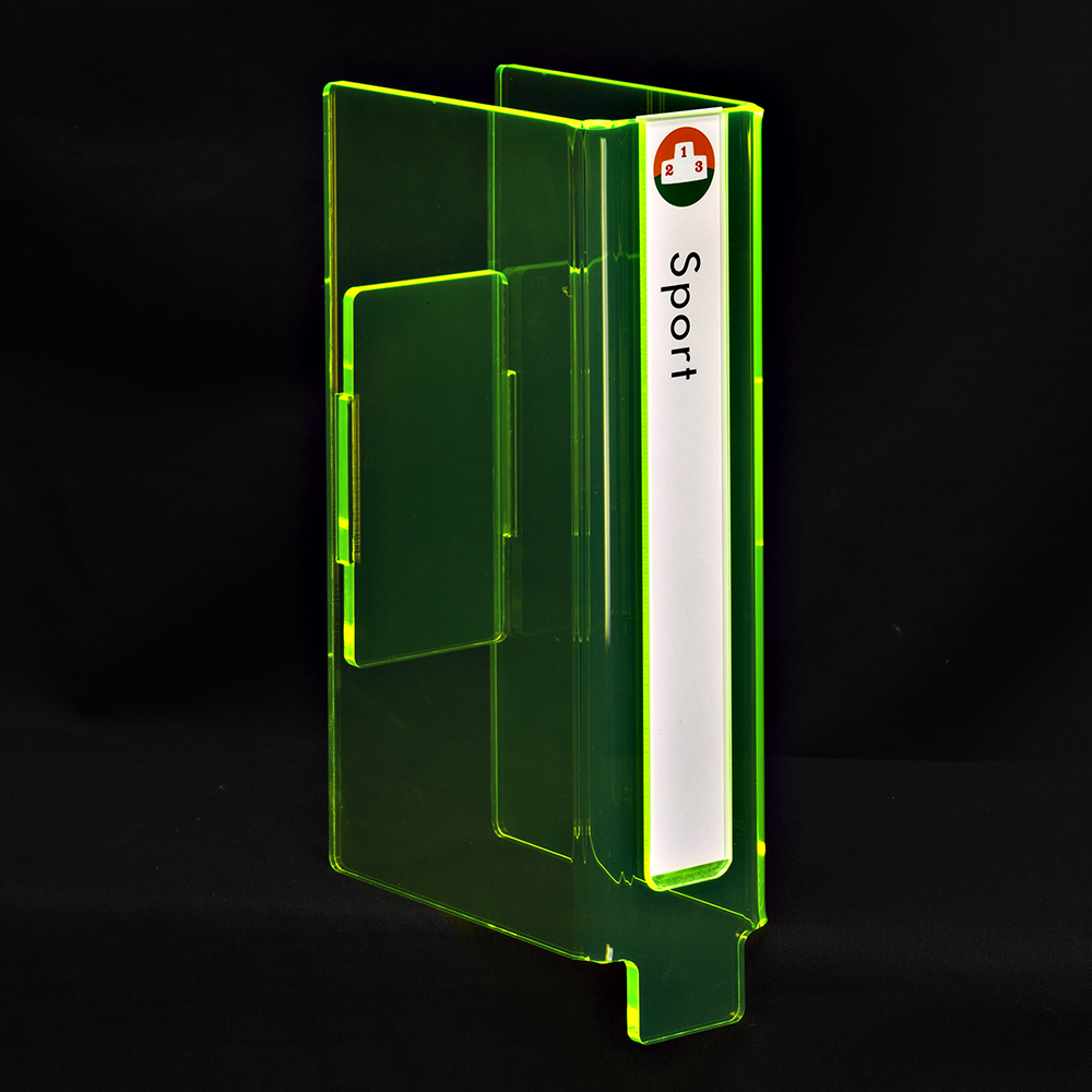 Point d’orientation en acrylique solide. Disponible en version transparente ou dans différentes teintes fluorescentes.