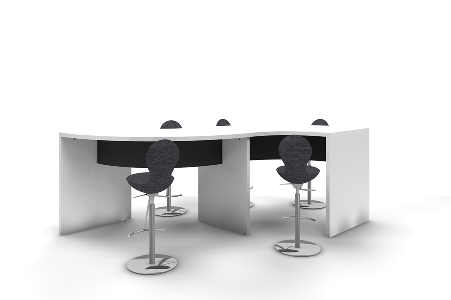Twin : deux tables incurvées formant un S, avec le panneau avant placé au milieu, pour pouvoir les utiliser des deux côtés.