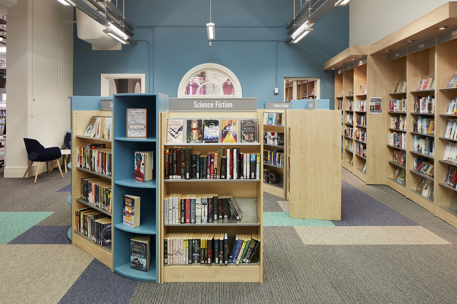 Fin 2021, GLL* (Greenwich Leisure Limited- entreprise sociale caritative) nous a confié la conception et l'aménagement de la bibliothèque d'Eltham, dans le cadre d'un vaste projet de rénovation. Le projet a été réalisé par une équipe spécialisée interne d'architectes d'intérieur et de designers.