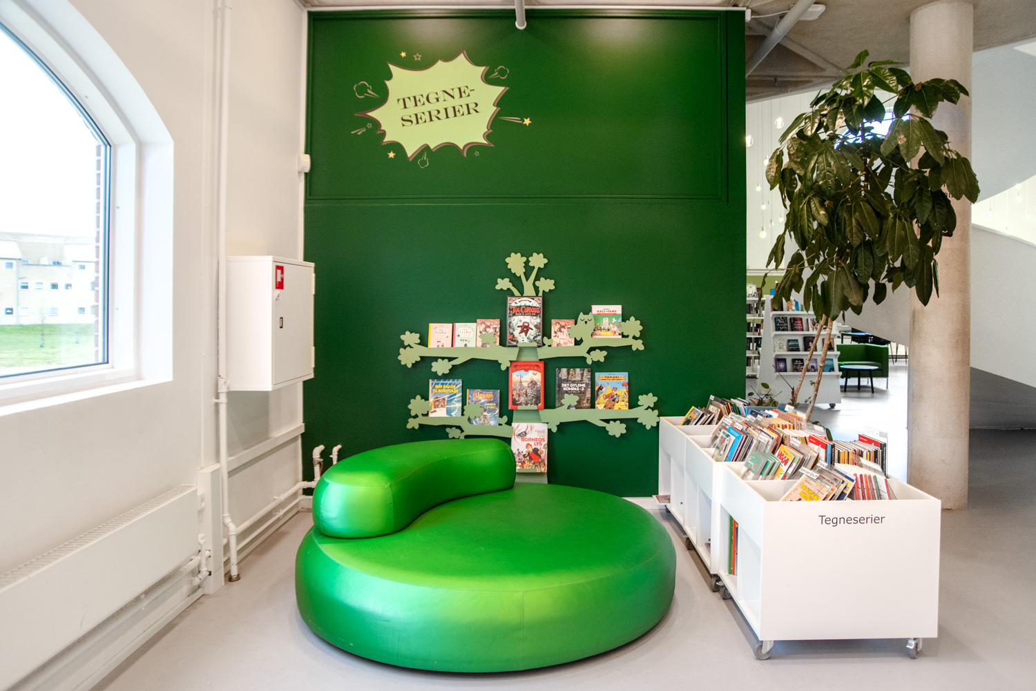 Les bacs à albums et présentoirs peuvent être installés n'importe où dans l'espace jeunesse pour illustrer le thème de la nature tout en ajoutant une touche de fantaisie parmi le mobilier et la décoration d'intérieur de la bibliothèque.
