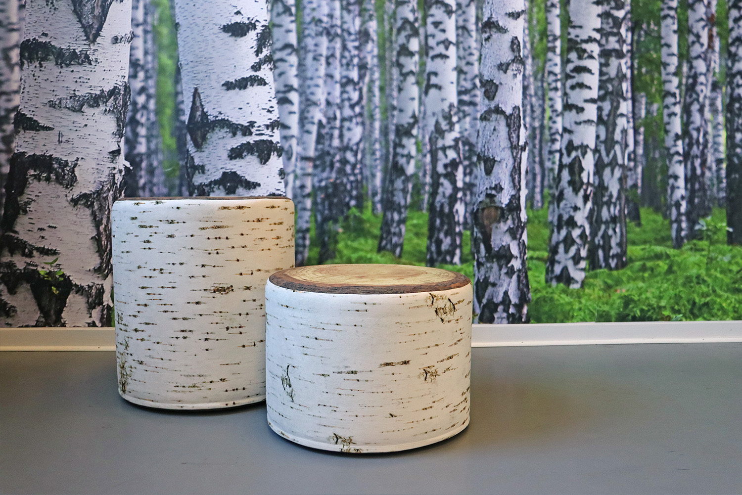 La collection Wood est une création unique qui allie parfaitement design, confort et fonctionnalité. Les motifs très réalistes donnent l'impression que les poufs en forme de souche, de bûche ou de tronc d'arbre sont vrais et font surgir la forêt dans la bibliothèque.