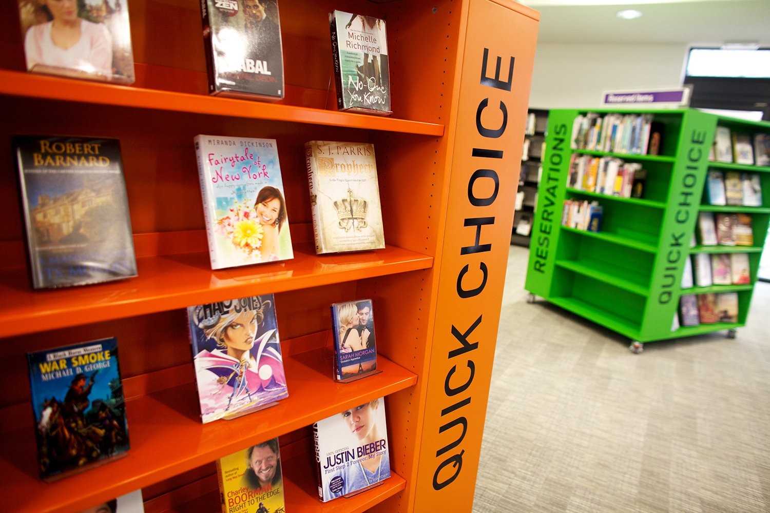 À l’instar du secteur de la distribution qui place volontairement des produits à proximité de la caisse et de l’entrée pour inciter les clients à acheter, les bibliothèques modernes actuelles exposent désormais les « coups de cœur » et les dernières nouveautés près de l’entrée ou du comptoir. Ces espaces offrent aux visiteurs un point de référence et la possibilité de sélectionner un ouvrage recommandé par la bibliothèque. Ce type de présentation épargne aux visiteurs toute recherche fastidieuse et exploite le pouvoir d’attraction de la couverture des livres.