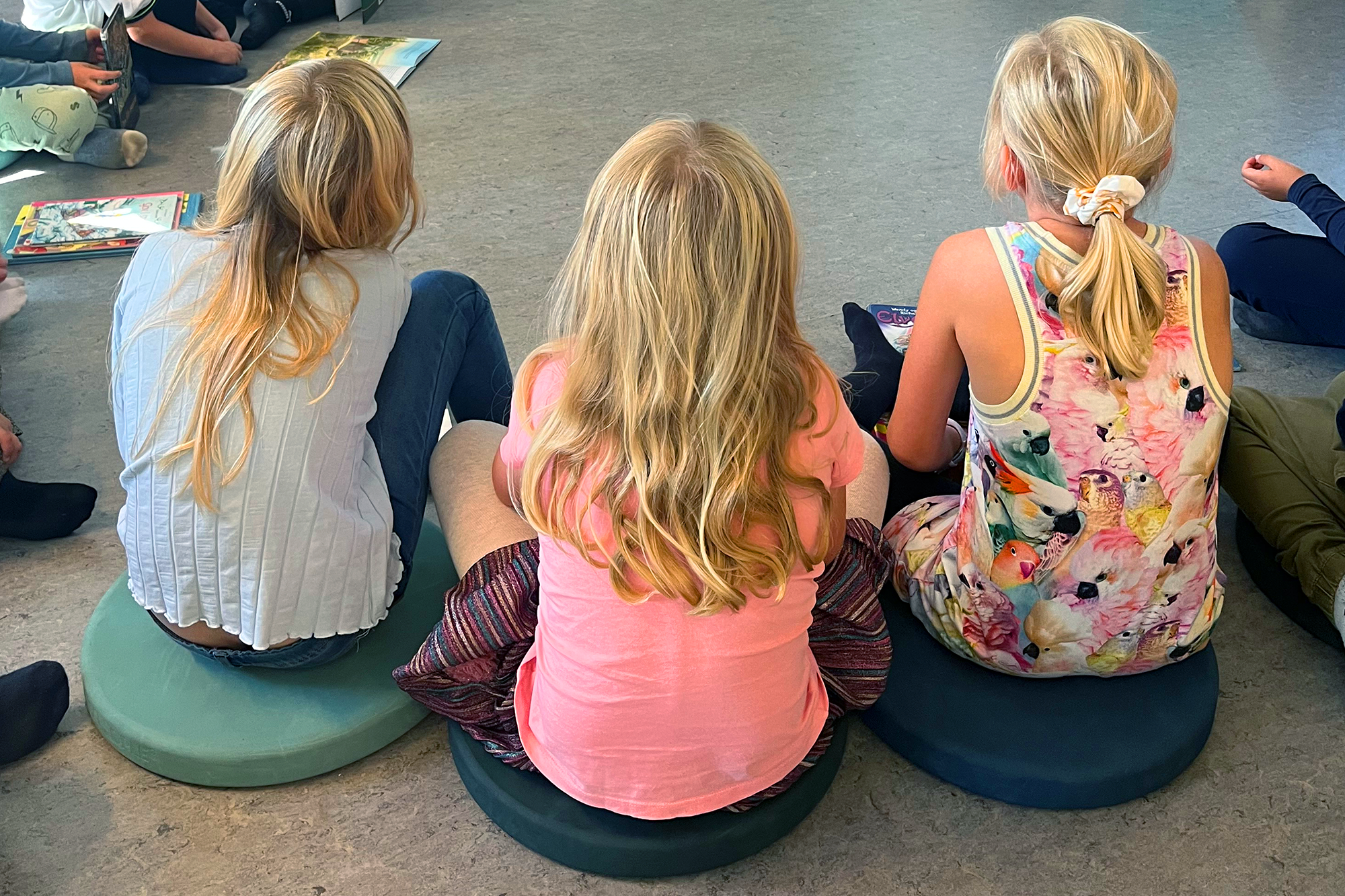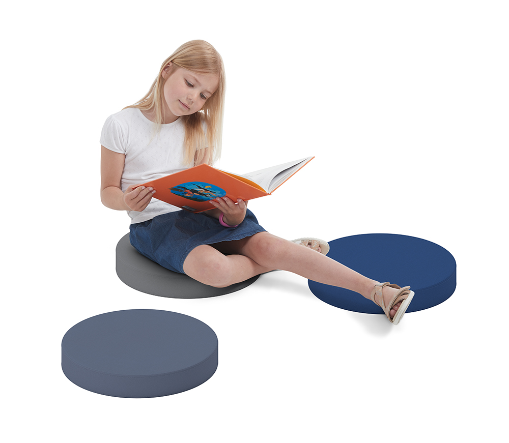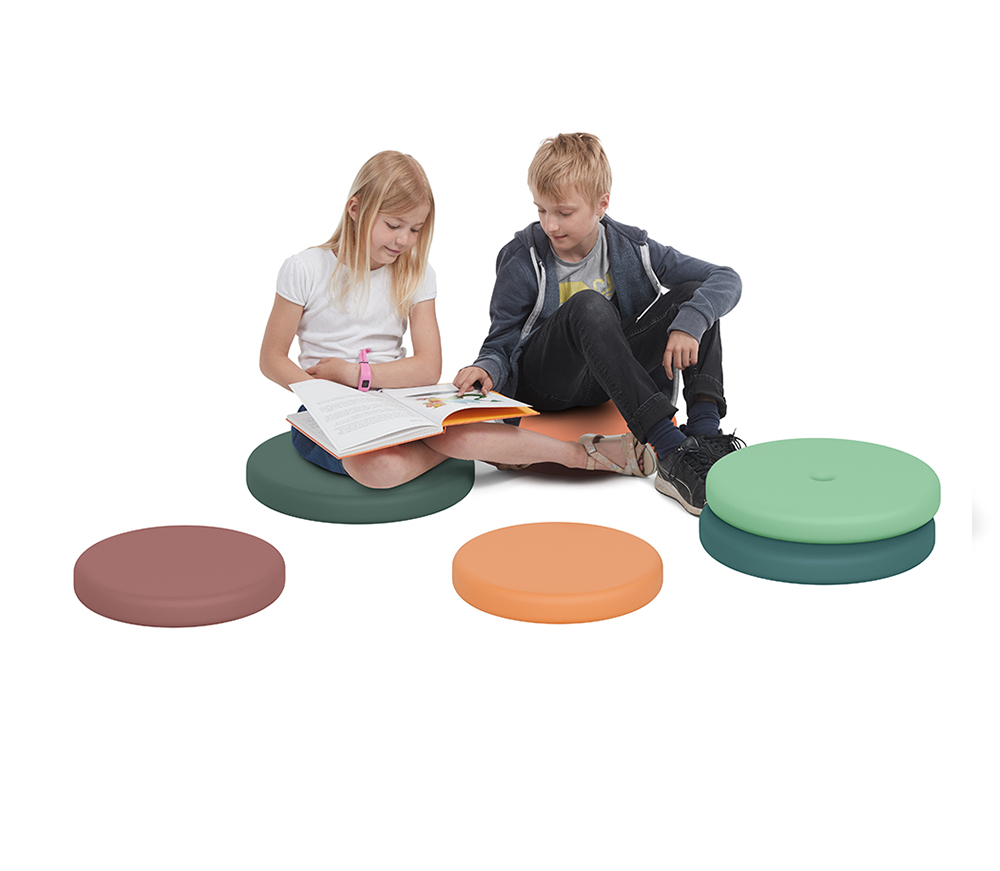 Nous sommes très heureux des coussins que nous avons choisis. La matière très résistante permet aux enfants de s'asseoir durablement sur les coussins. Le trou pratique au centre du coussin facilite sa préhension, son utilisation et son rangement pour tous les élèves, quel que soit leur âge. Le chariot est facile à ranger, ce qui est bien, quand on n'a pas beaucoup d'espace".