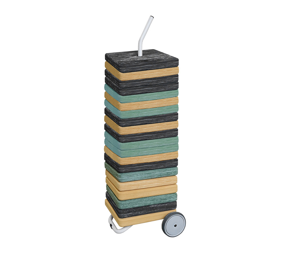 En plus de leur design et de leurs nombreuses possibilités d'utilisation, les coussins sont faciles à ranger et à transporter grâce à un chariot adapté.