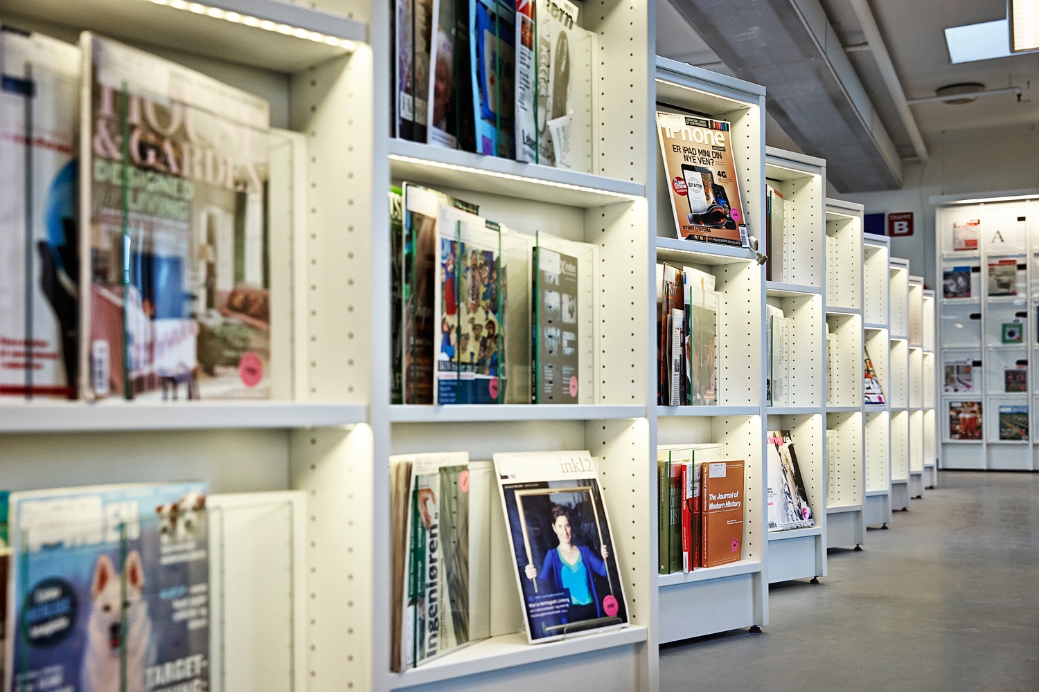 L’éclairage est un problème récurrent dans les bibliothèques : il peut en effet être source d’inconfort et susciter des difficultés pour distinguer correctement le titre des ouvrages, en particulier dans les espaces mal éclairés ou au niveau des tablettes inférieures des rayonnages. Au lieu de prévoir un nouvel éclairage au plafond, envisagez plutôt l’installation de luminaires à LED directement sur les rayonnages.