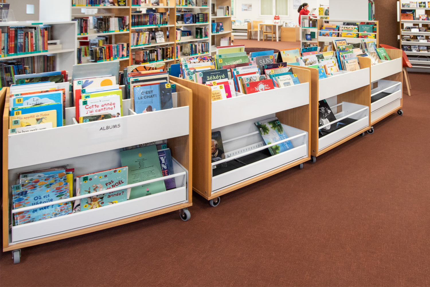 En plus de rendre les anciens bacs à albums mobiles, nous avons intégré dans leur partie inférieure, un bac télescopique rendant ainsi les grands albums plus accessibles.