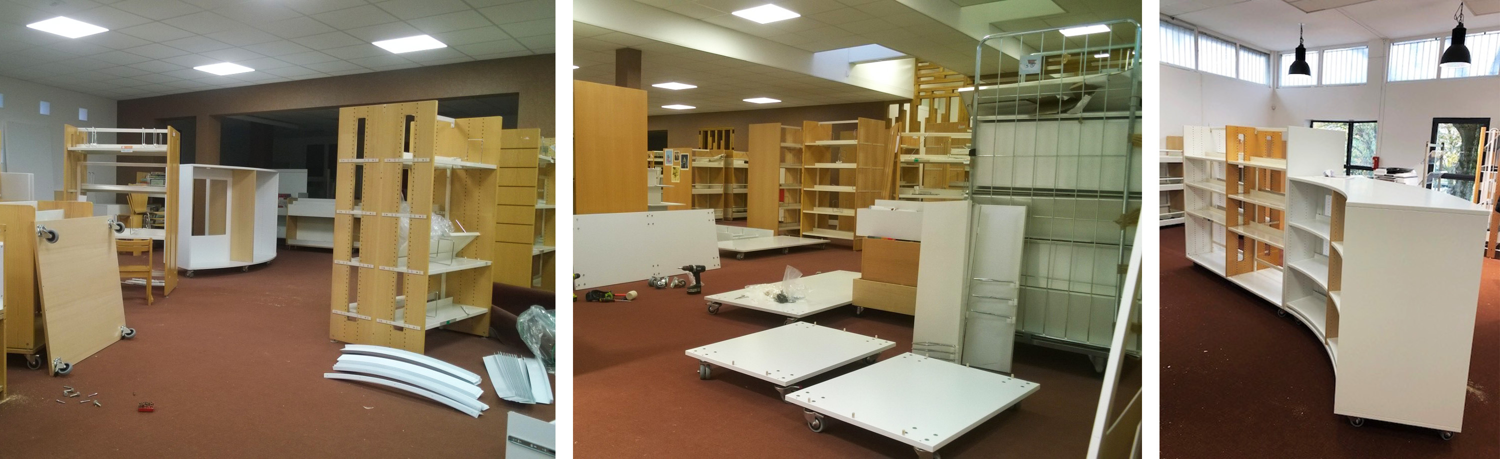 Les images ci- après illustrent les principaux changements, ainsi que le recyclage et la réaffectation appropriés des étagères et des meubles à Verrières-le-Buisson.