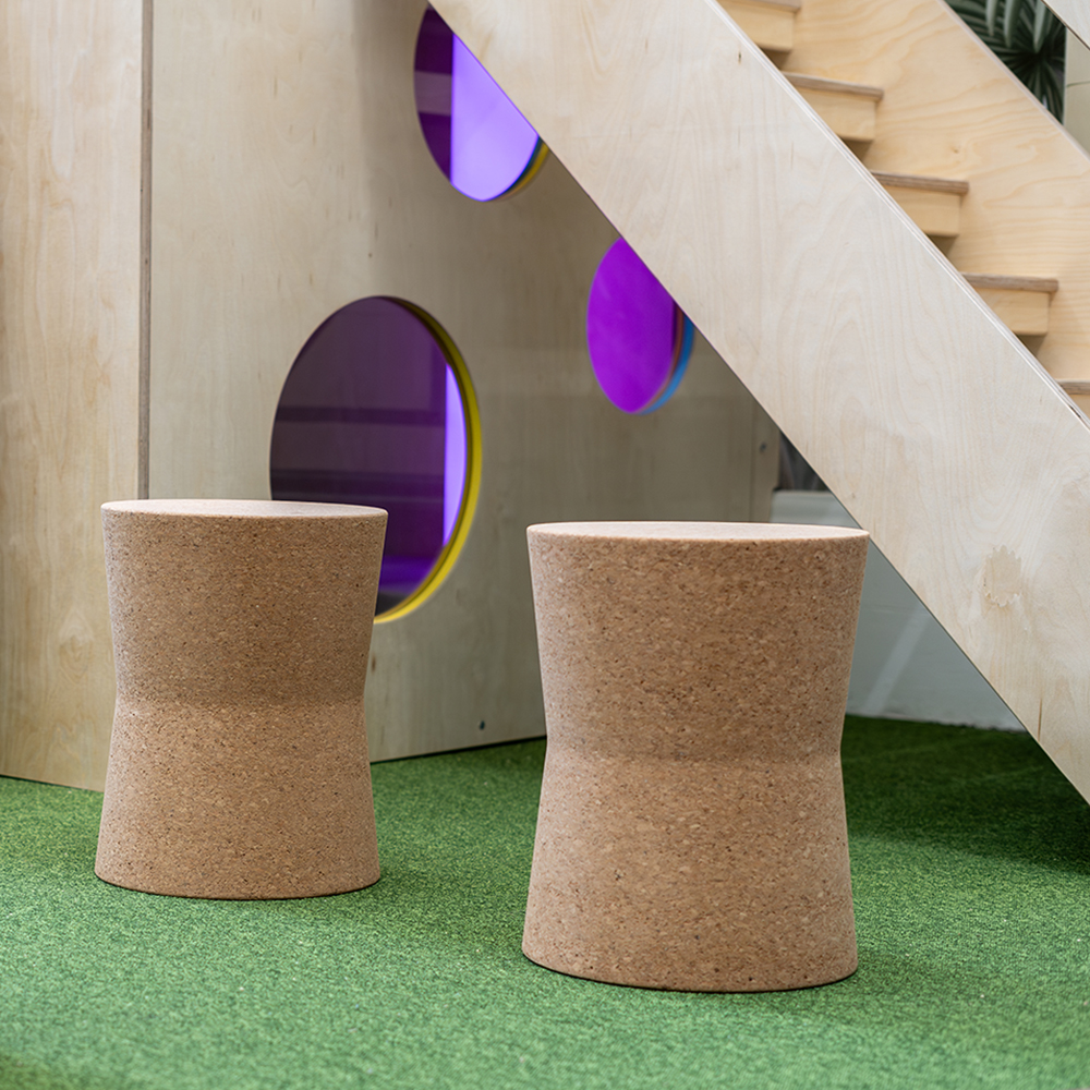 Le liège est naturel, résistant, facile à nettoyer, insonorisant et ignifuge, ce qui en fait un matériau idéal pour les espaces publics et en particulier dans les environnements destinés aux enfants.
