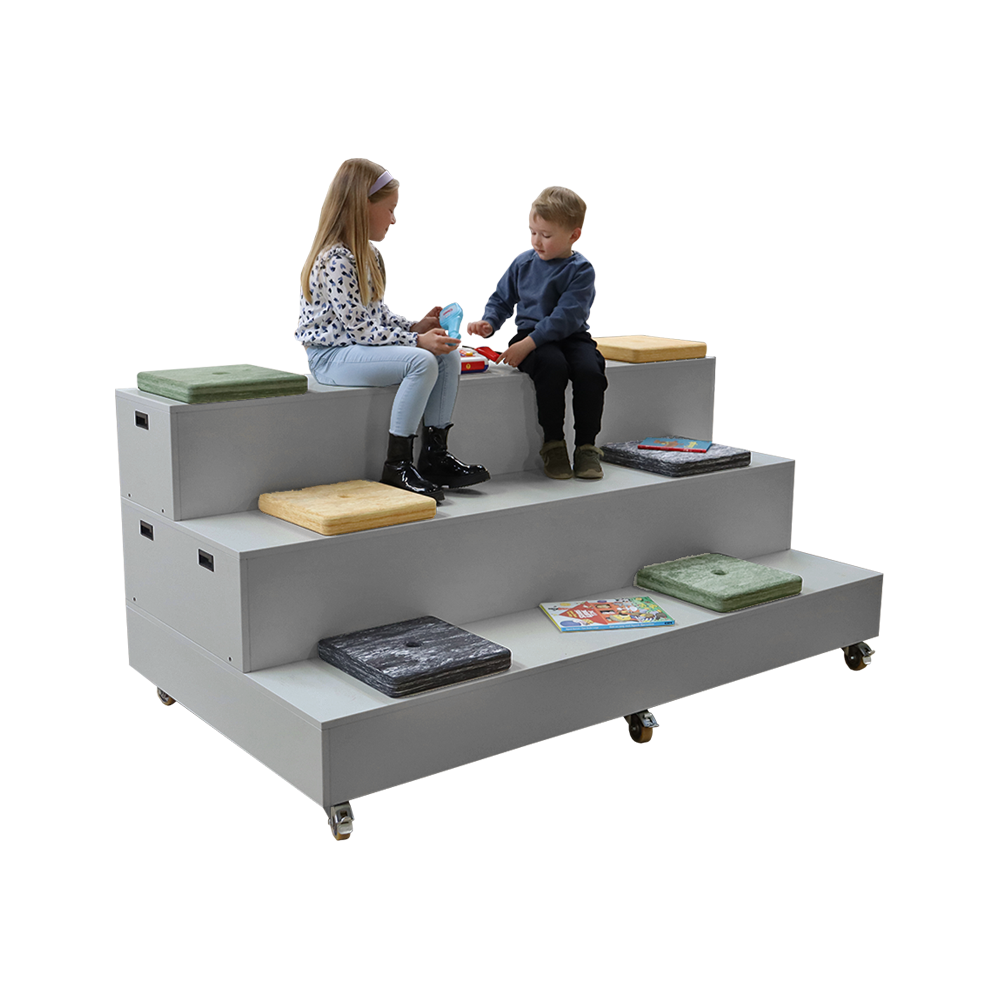 Avec son design minimaliste et élégant et ses charnières dissimulées, Verona peut être utilisé seul ou combiné avec d'autres unités. Au centre d'un espace ou contre un mur. À l'arrière, un grand espace est prévu pour ranger des objets tels que des coussins de siège, des jeux, des livres et des jouets, ce qui permet de laisser libre cours à la créativité. La partie supérieure du podium peut également être facilement inversée, ce qui permet de positionner les compartiments de rangement vers l'avant.