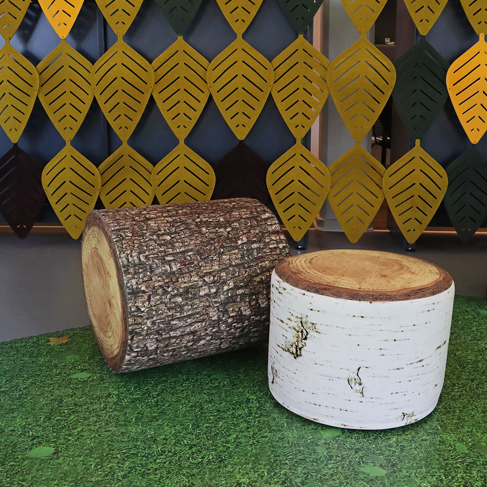 La ressemblance avec une vraie souche d'arbre est saisissante. Les poufs sont confortables et stables. Ils sont disponibles en deux hauteurs pour convenir aux enfants et aux adultes. De plus, les sièges sont légers (1,5 - 1,7 kg) et empilables, ce qui en font des objets de décoration pratiques et originaux.