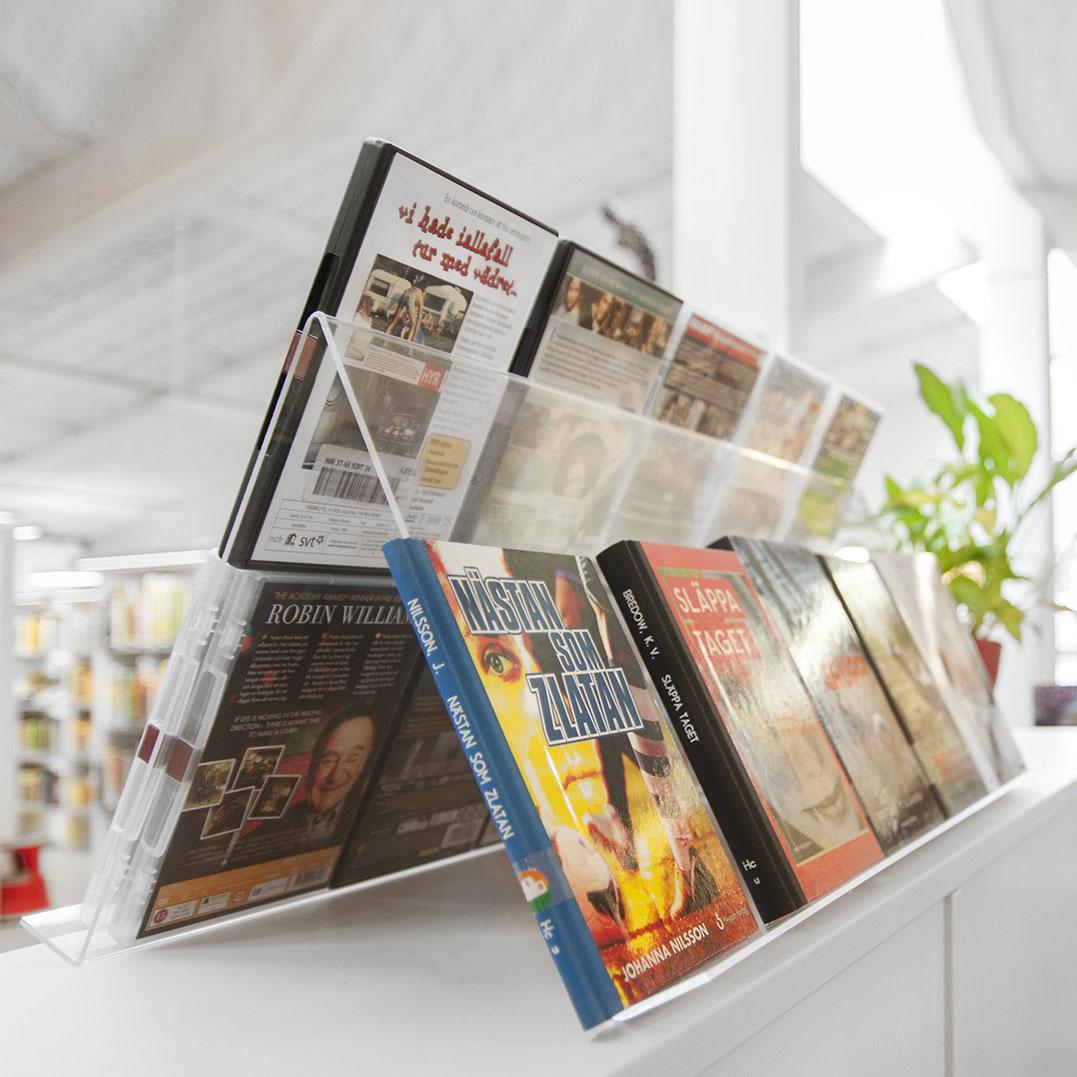Présentoir de bonne capacité pour exposition des deux côtés.