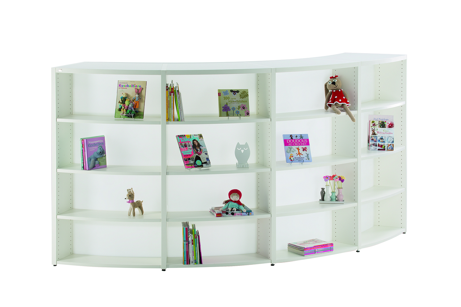 Polyvalence et plaisir sont les termes qui qualifient le mieux le rayonnage Inform courbe.