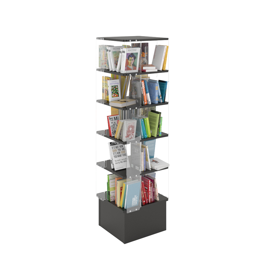 Tour avec cinq étagères divisées chacune en quatre compartiments.